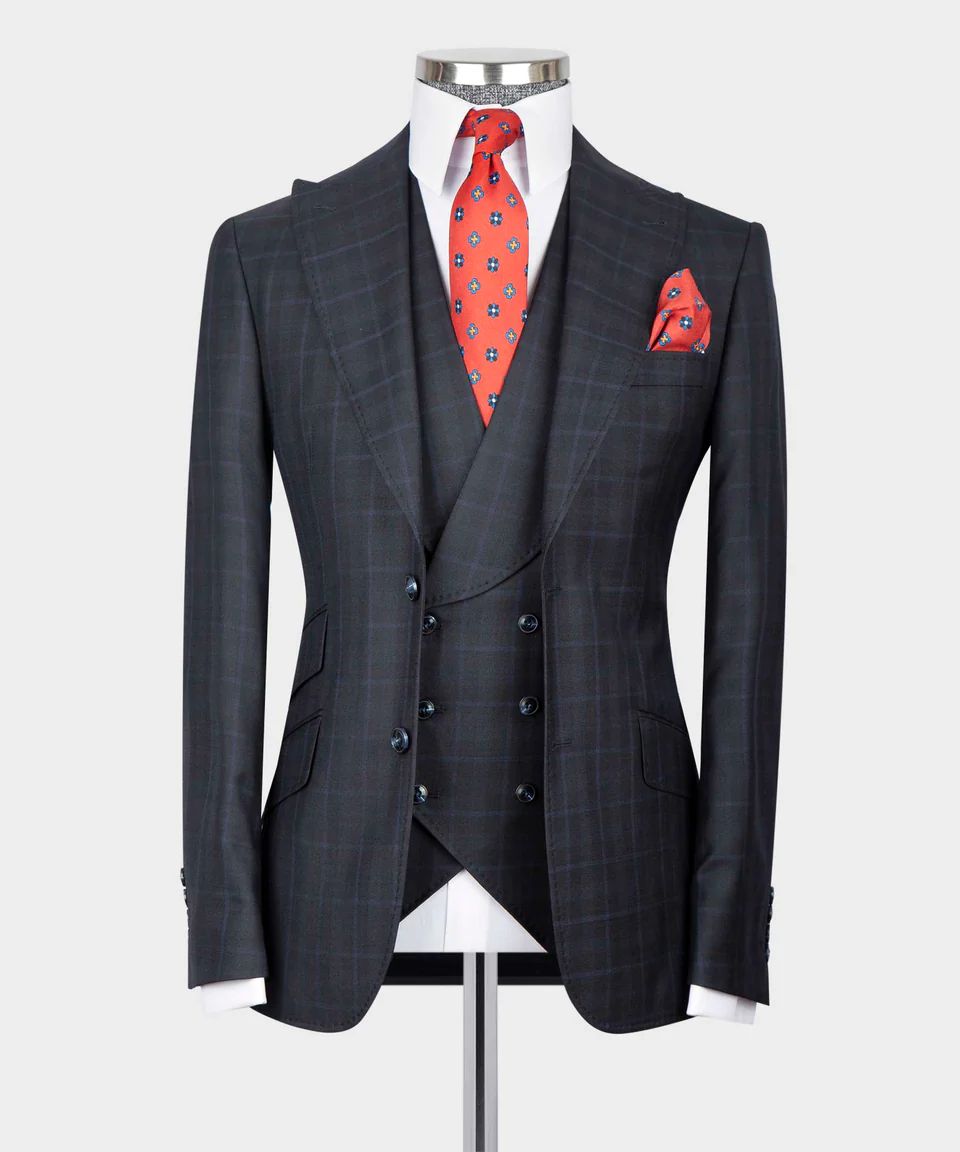 Singlt breasted jacket, vest and pants