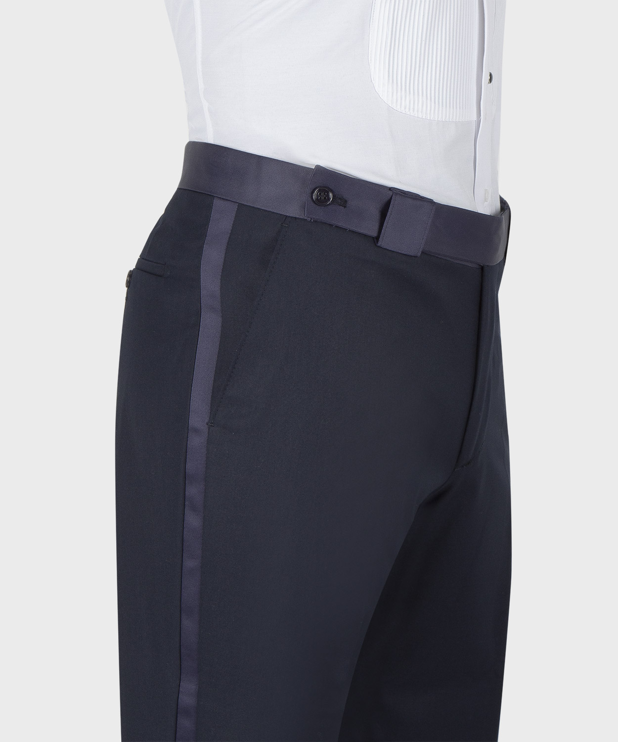 Our Liam Michael black label suits are European cut, which it tends to have slimmer-cut jacket and pants so will be cut to have a larger drop, typically a ten. In this instance, it might be worth considering going up a size to ensure the jacket isn’t too snug along with the pants. For example: Jacket size 46, pants size 40 (six drop).