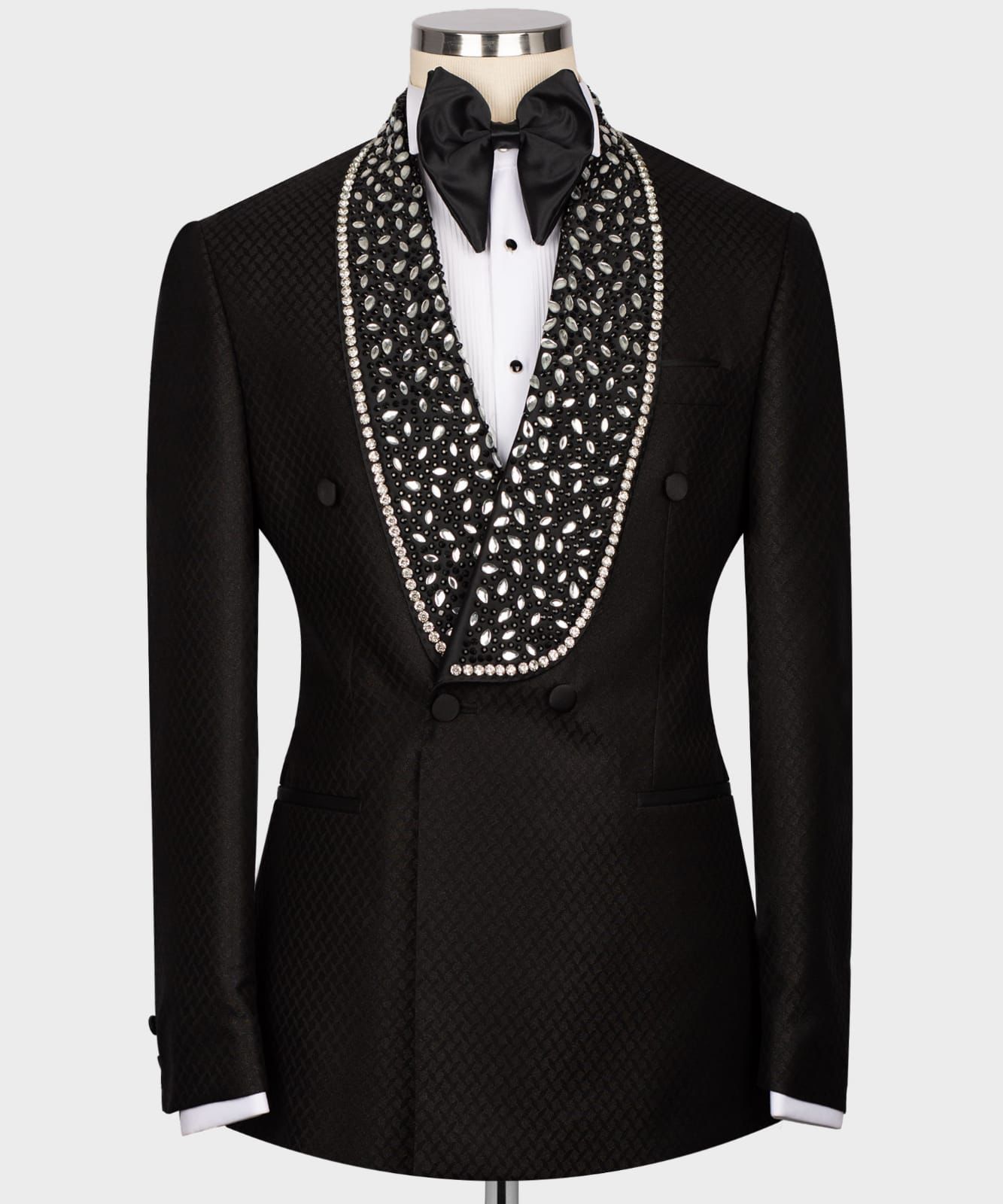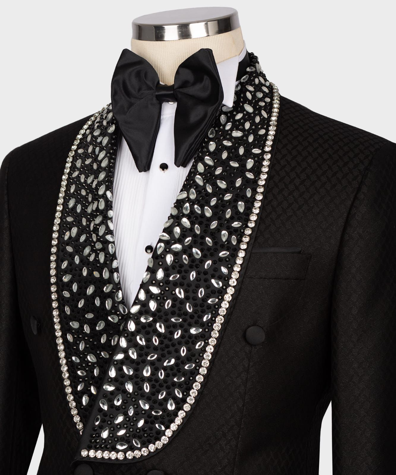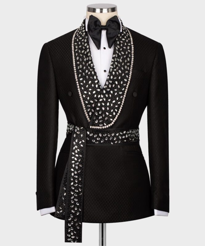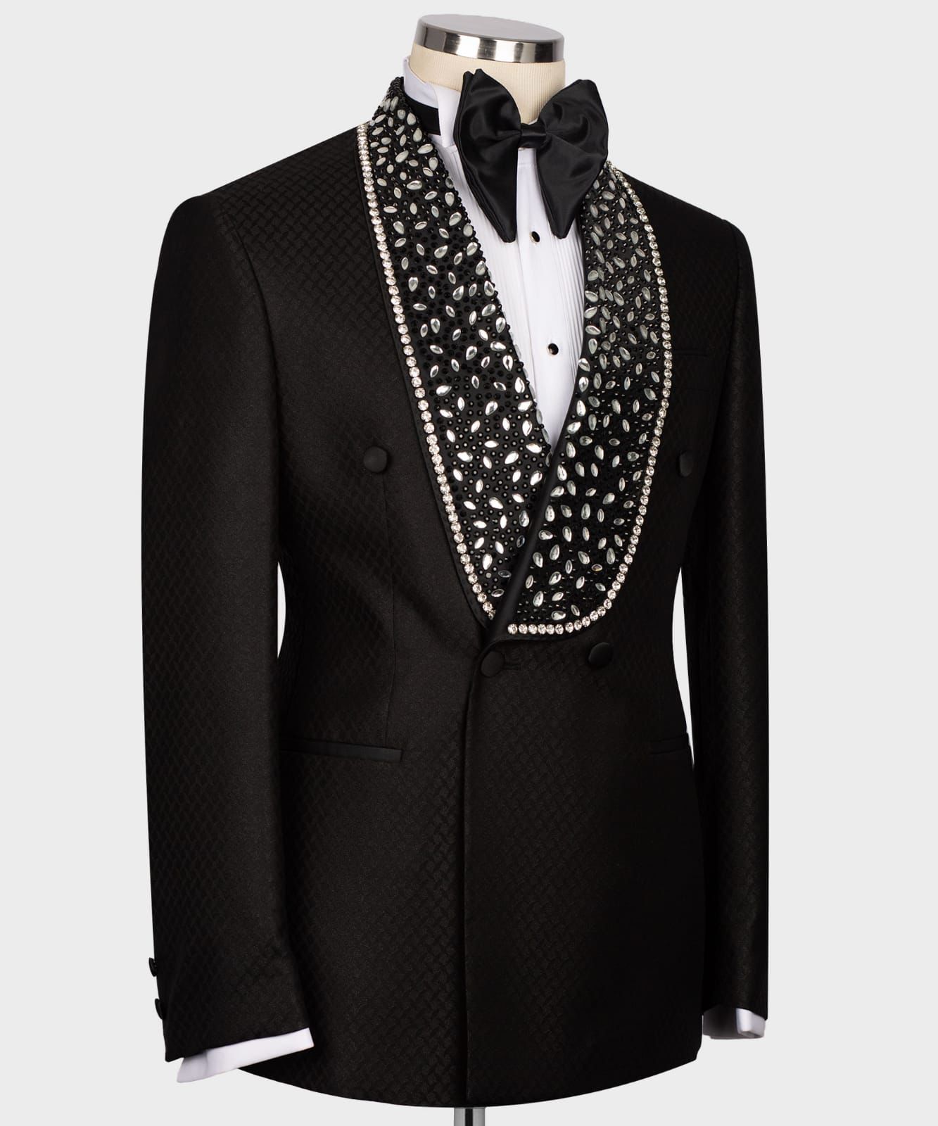 Our Liam Michael black label suits and tuxedos are European cut, which it tends to have slimmer-cut jacket and pants so will be cut to have a larger drop, typically a ten. In this instance, it might be worth considering going up a size to ensure the jacket isn’t too snug along with the pants. For example: Jacket size 46, pants size 40 (six drop). Change tuxedo pants color to white or navy for additional $125.