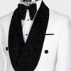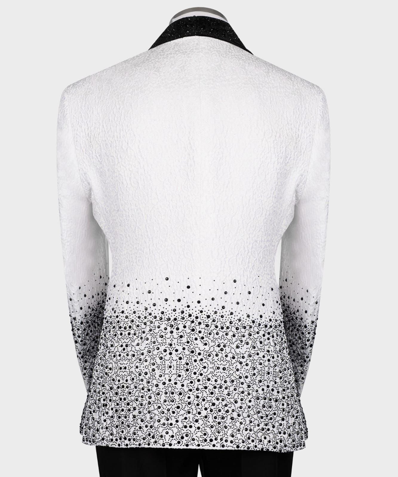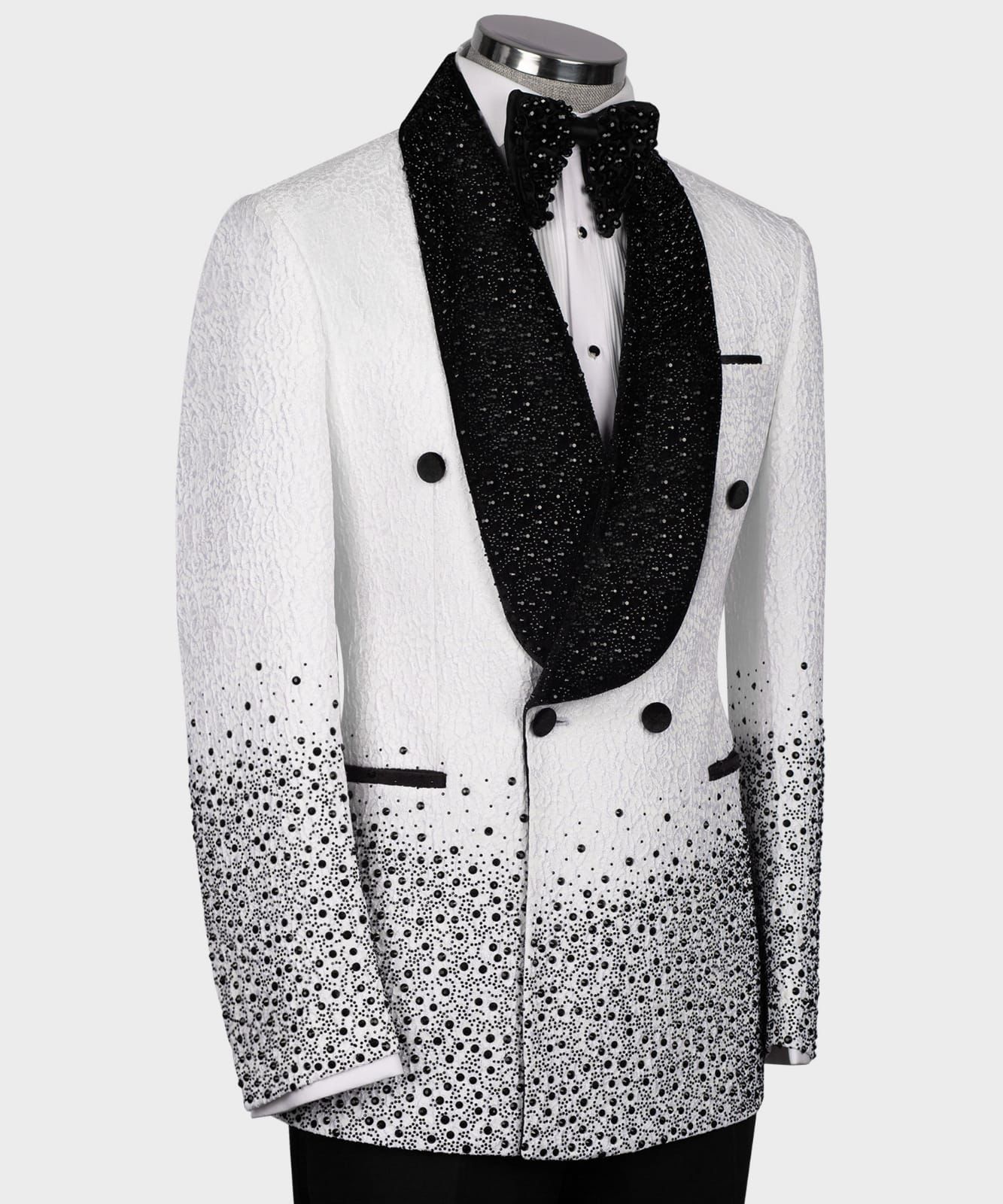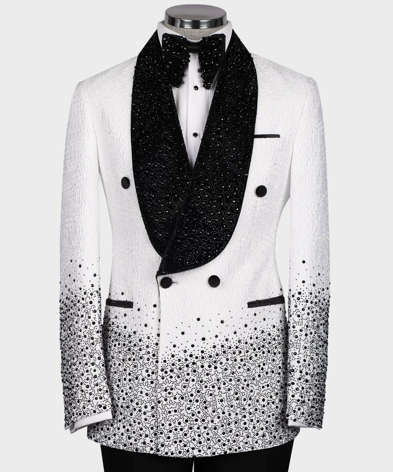 Our Liam Michael black label suits and tuxedos are European cut, which it tends to have slimmer-cut jacket and pants so will be cut to have a larger drop, typically a ten. In this instance, it might be worth considering going up a size to ensure the jacket isn’t too snug along with the pants. For example: Jacket size 46, pants size 40 (six drop). Change tuxedo pants color to white or navy for additional $125.