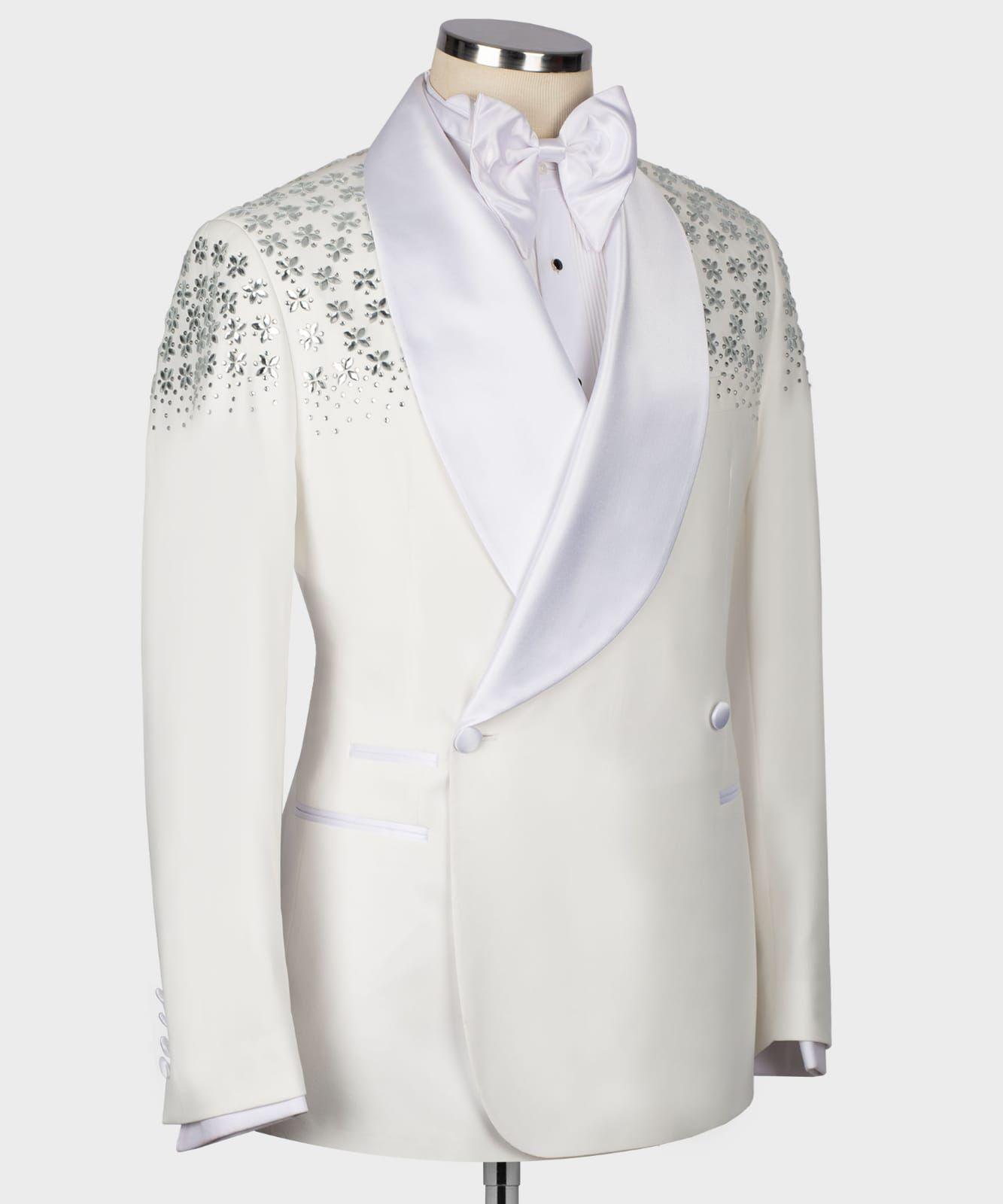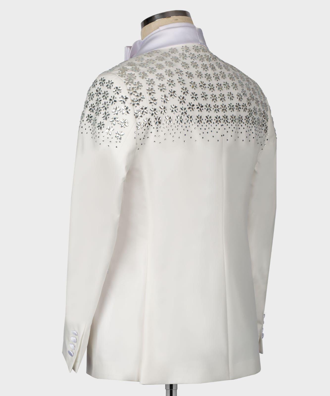 Our Liam Michael black label suits and tuxedos are European cut, which it tends to have slimmer-cut jacket and pants so will be cut to have a larger drop, typically a ten. In this instance, it might be worth considering going up a size to ensure the jacket isn’t too snug along with the pants. For example: Jacket size 46, pants size 40 (six drop). Change tuxedo pants color to white, navy or black for additional $125.