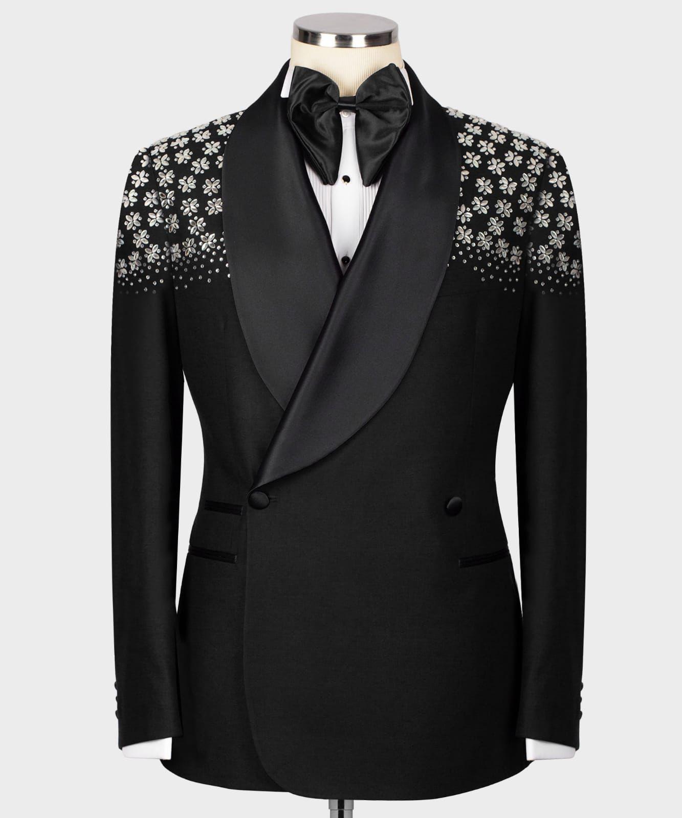 Our Liam Michael black label suits and tuxedos are European cut, which it tends to have slimmer-cut jacket and pants so will be cut to have a larger drop, typically a ten. In this instance, it might be worth considering going up a size to ensure the jacket isn’t too snug along with the pants. For example: Jacket size 46, pants size 40 (six drop). Change tuxedo pants color to white, navy or black for additional $125.