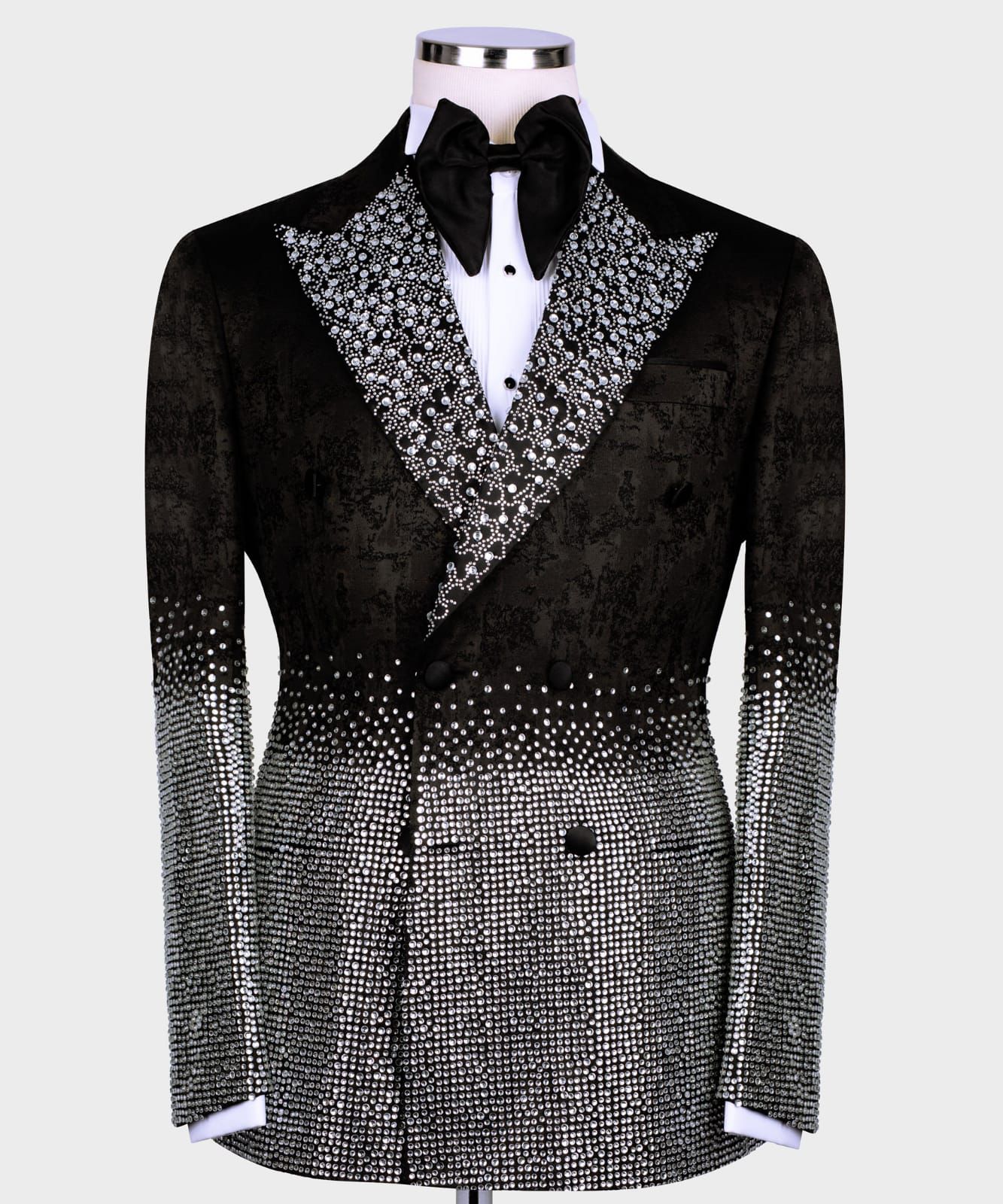 Our Liam Michael black label suits and tuxedos are European cut, which it tends to have slimmer-cut jacket and pants so will be cut to have a larger drop, typically a ten. In this instance, it might be worth considering going up a size to ensure the jacket isn’t too snug along with the pants. For example: Jacket size 46, pants size 40 (six drop). Change tuxedo pants color to white, navy for additional $125.