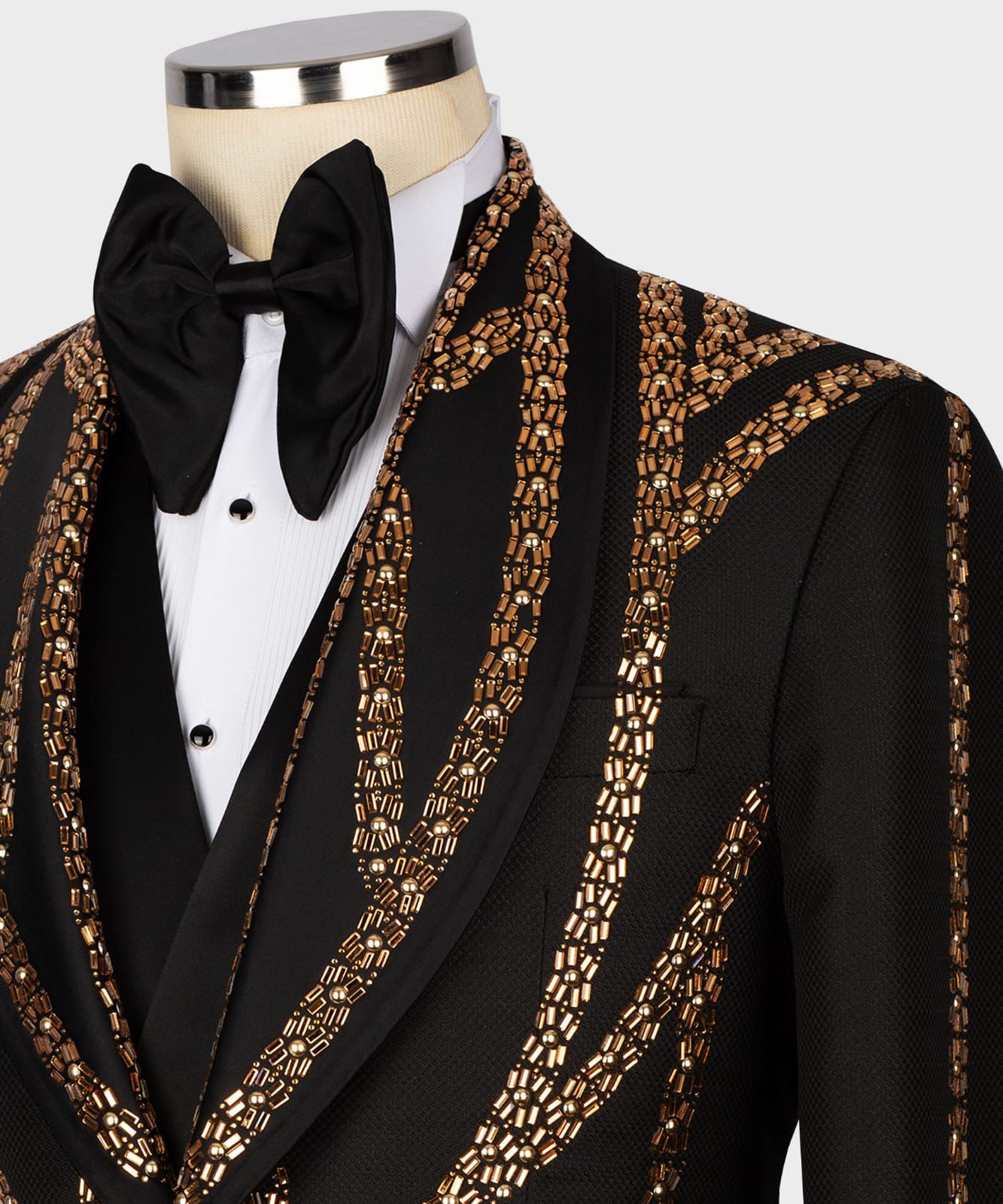 Our Liam Michael black label suits and tuxedos are European cut, which it tends to have slimmer-cut jacket and pants so will be cut to have a larger drop, typically a ten. In this instance, it might be worth considering going up a size to ensure the jacket isn’t too snug along with the pants. For example: Jacket size 46, pants size 40 (six drop).