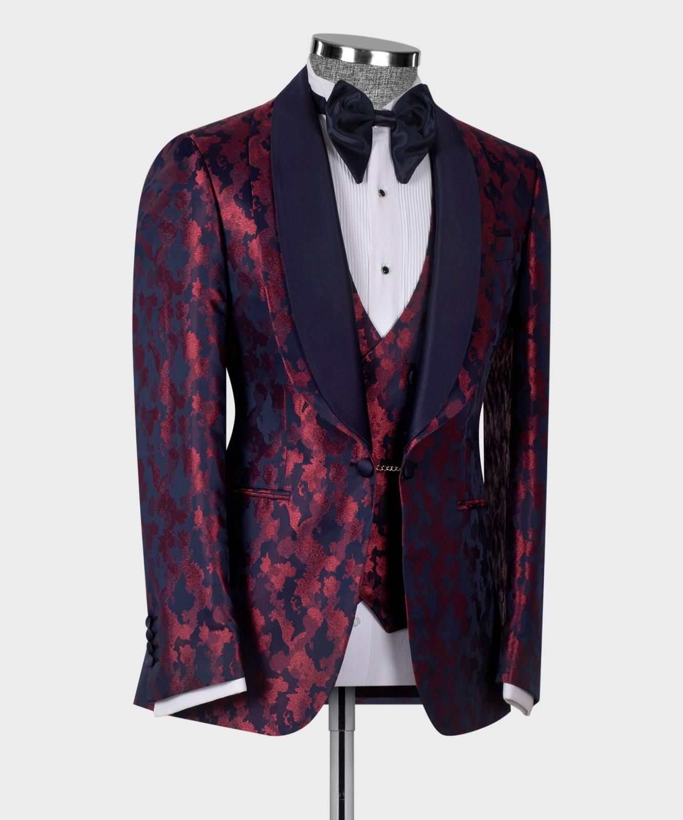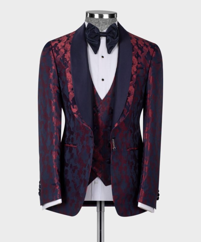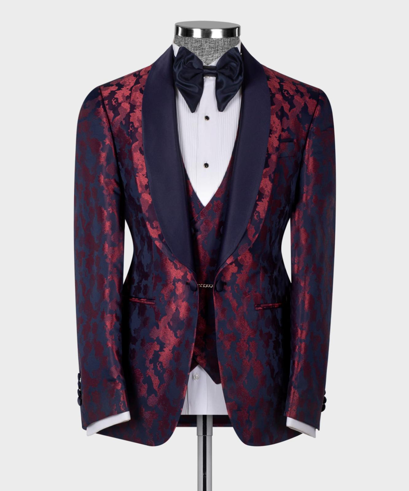 Fabric: Red and purple texture with purple satin lapel