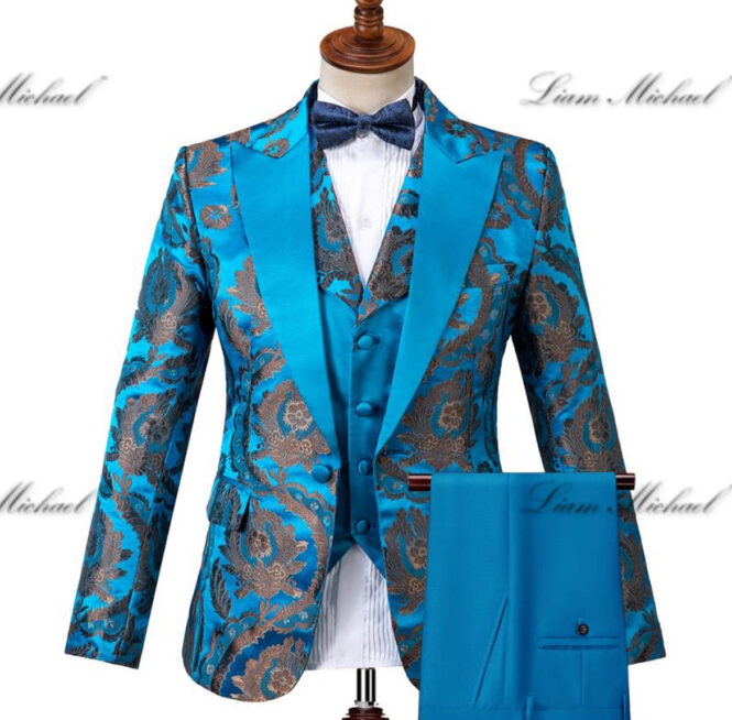-Vest (blue satin with jacquard collar)