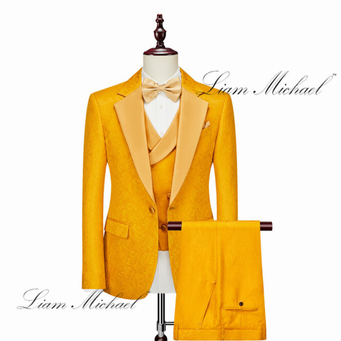 -Vest (yellow jacquard fabric with solid yellow satin collar)